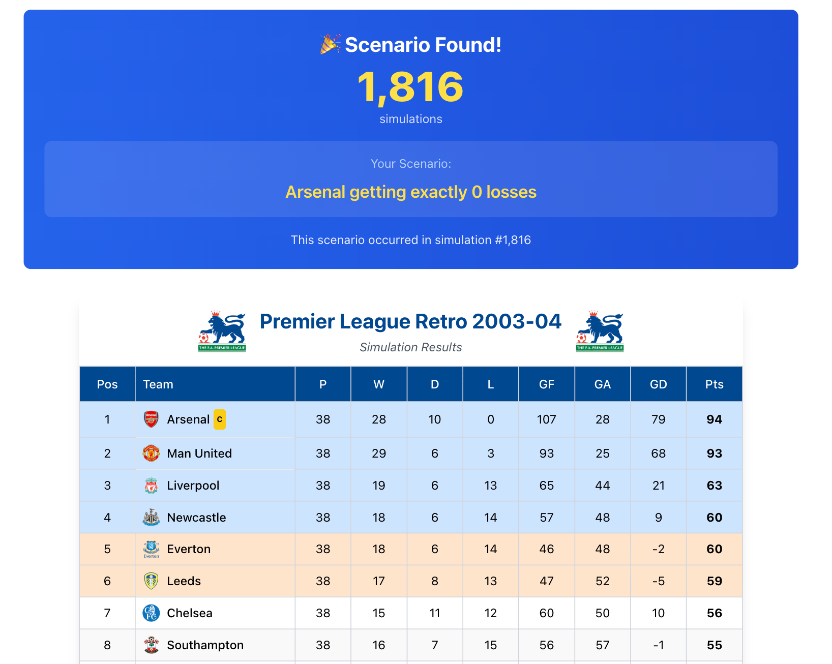 You’ll now be able to use How Many Sims Until… but on any past Premier League season, so if you’re looking to see how uncommon your club’s achievement was or how unlikely something might have been to occur, you can now get a rough idea.