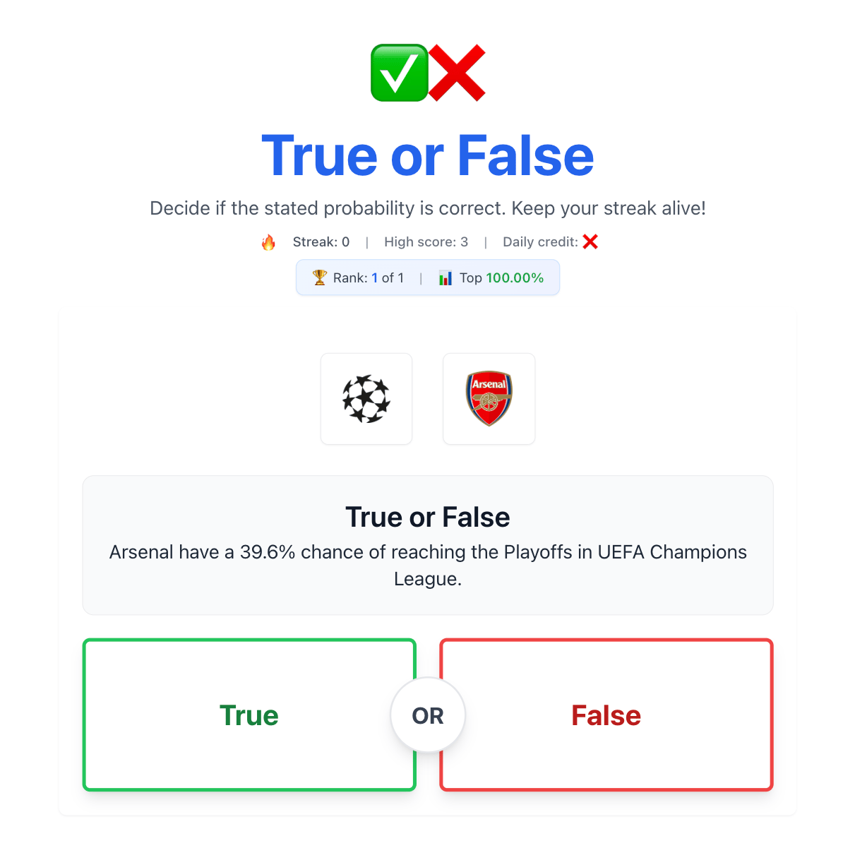 Another endless but daily credit-giving gamemode, which, trust me, is much harder than it looks. You’ll be asked questions based on the current projections from all leagues and cups you have to decide whether it’s true or false.