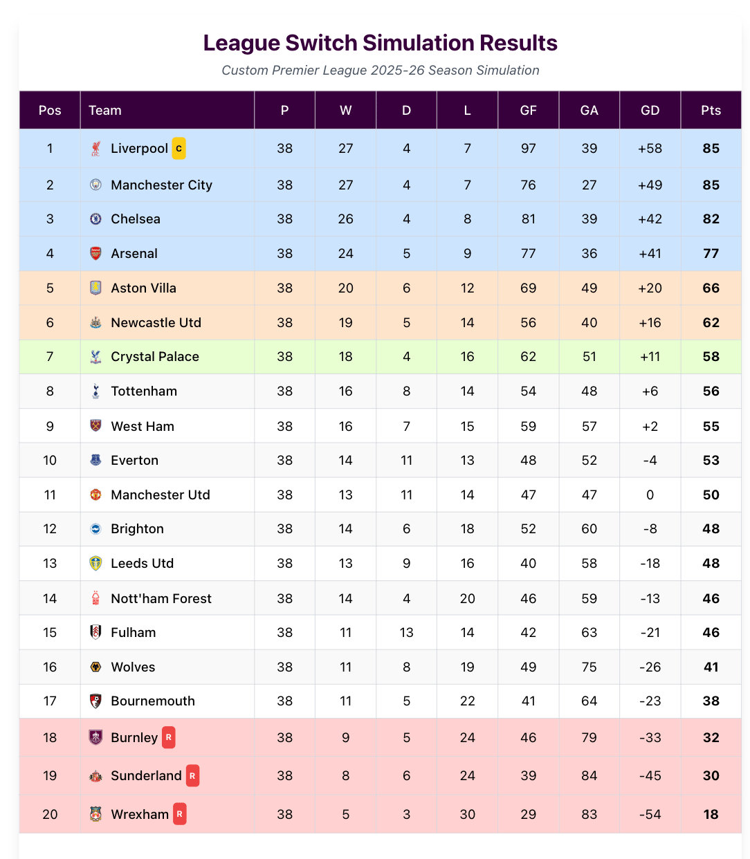 USE CODE: 'SEP5' TO GET 5 FREE CREDITSIf this is not for you, there is an unsubscribe button at the bottom of the email, but you’ll miss all the FusionSim updates and Premier League projections!