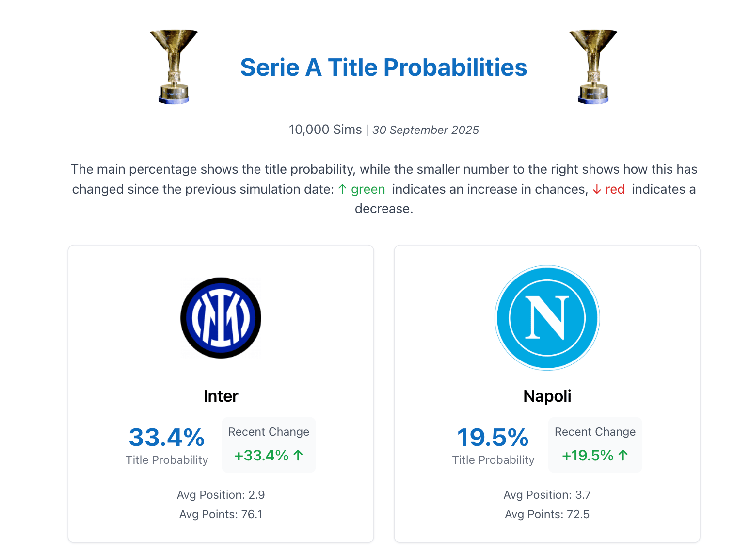 Over the next few weeks, I will also be implementing this on the other tools throughout the site. So you can do a ‘How many sims until… Bayern go undefeated’ soon.