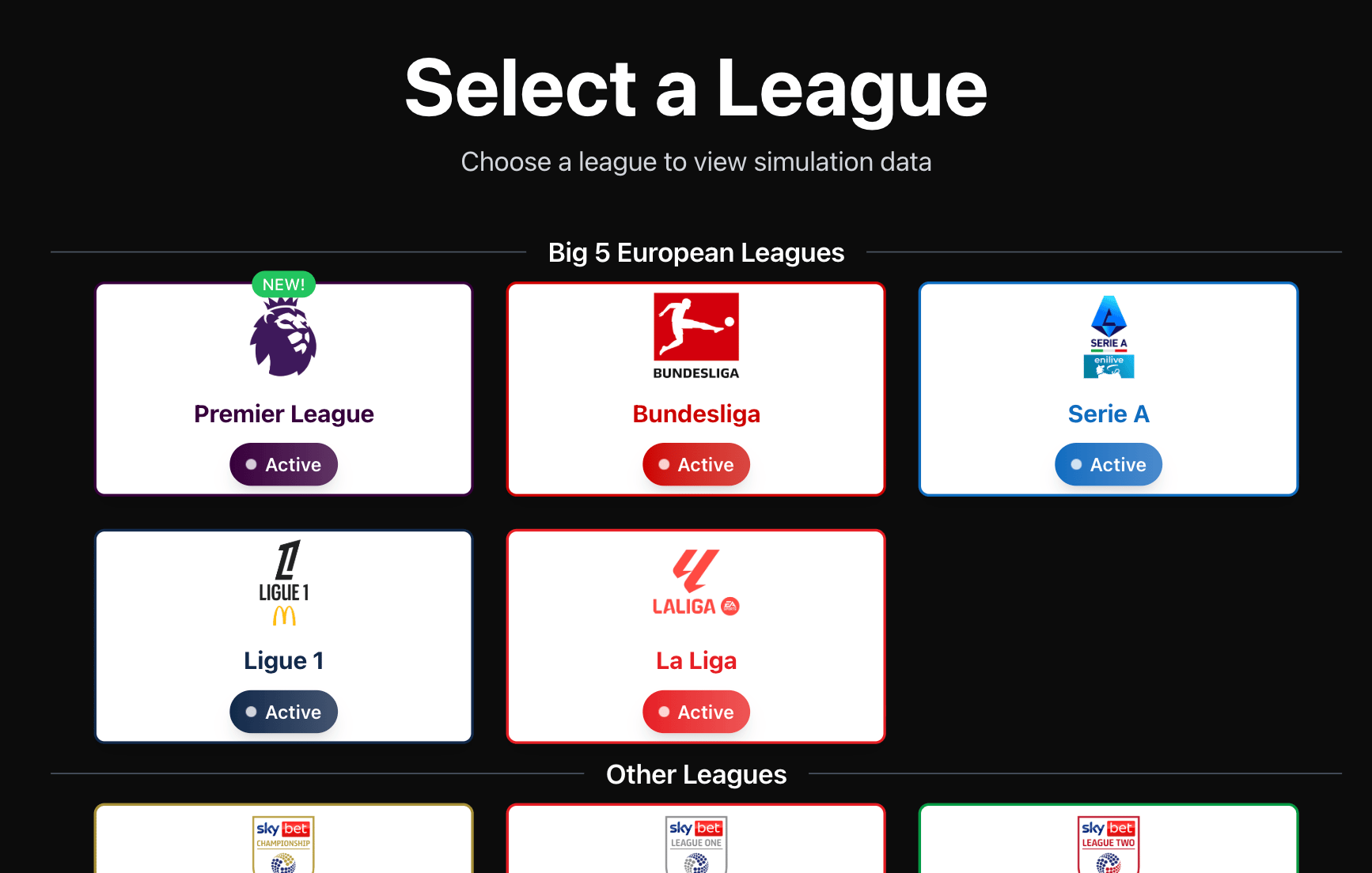 4 new leagues will be available, so now FusionSim will have the complete set of the big 5 European leagues. Each will have all the pages below,