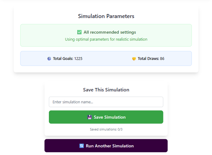You can get some additional information like the total goals and draws, so you can see how realistic the simulation is and save it with a custom name.