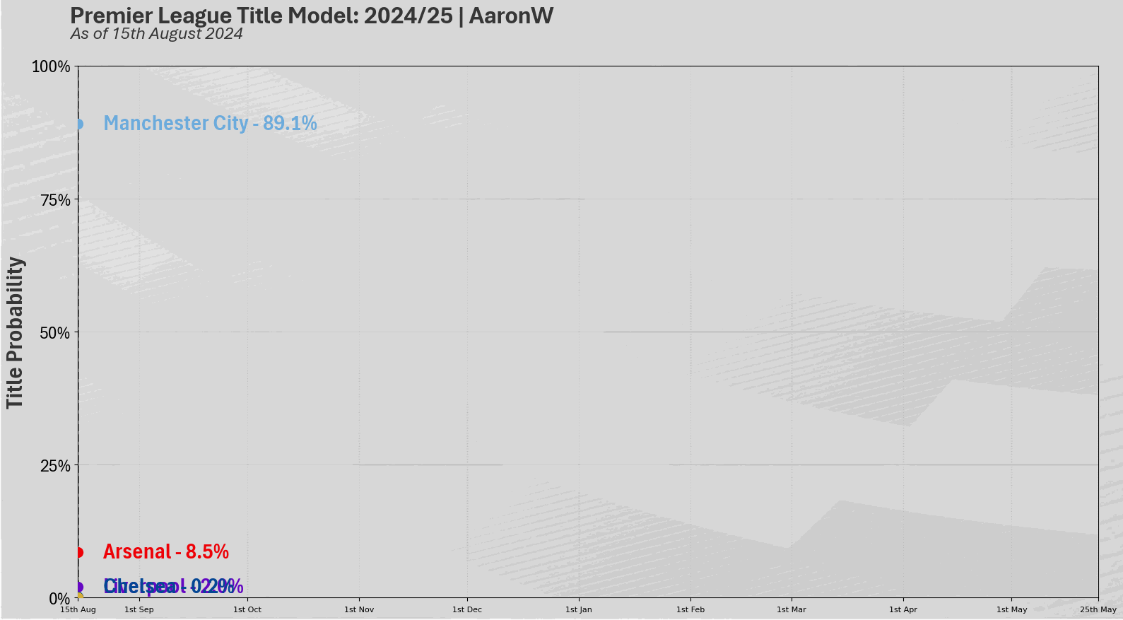 A brand new edition to the newsletter is this GIF showing how the title race chances have changed throughout the season! It aims to show the ups and downs of the season and how the unexpected always happens, Manchester City started with an 89% chance of winning the league title; now it’s the middle of January and they don’t feature on the plot!