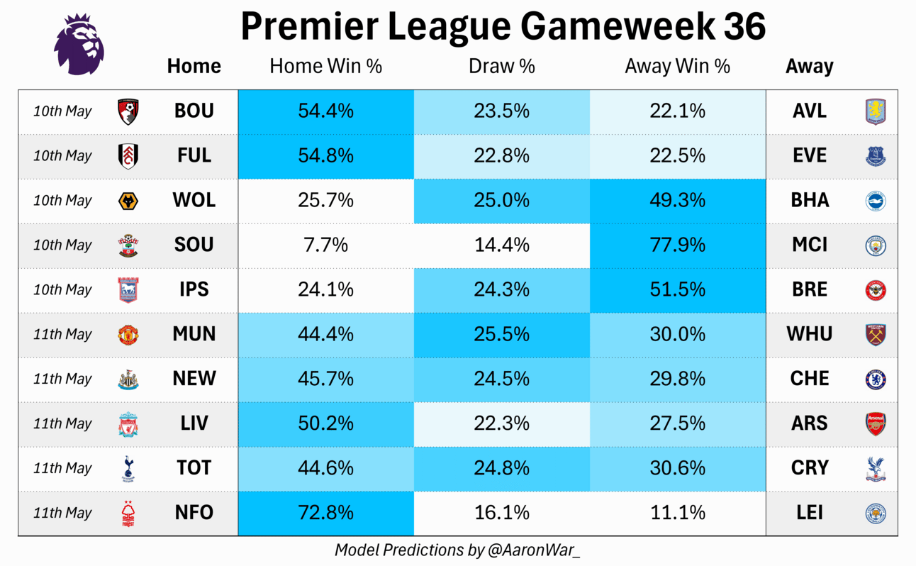 Welcome to The Matchday Digest, here is everything you need for Gameweek 36! A short catch-up this week before a bigger update next week on the race for Europe, now we know 6 Premier League sides will be in the Champions League next year.