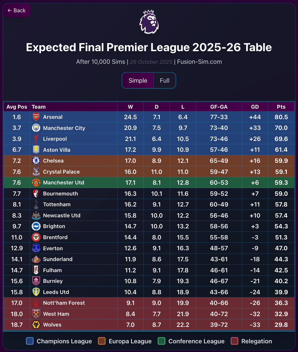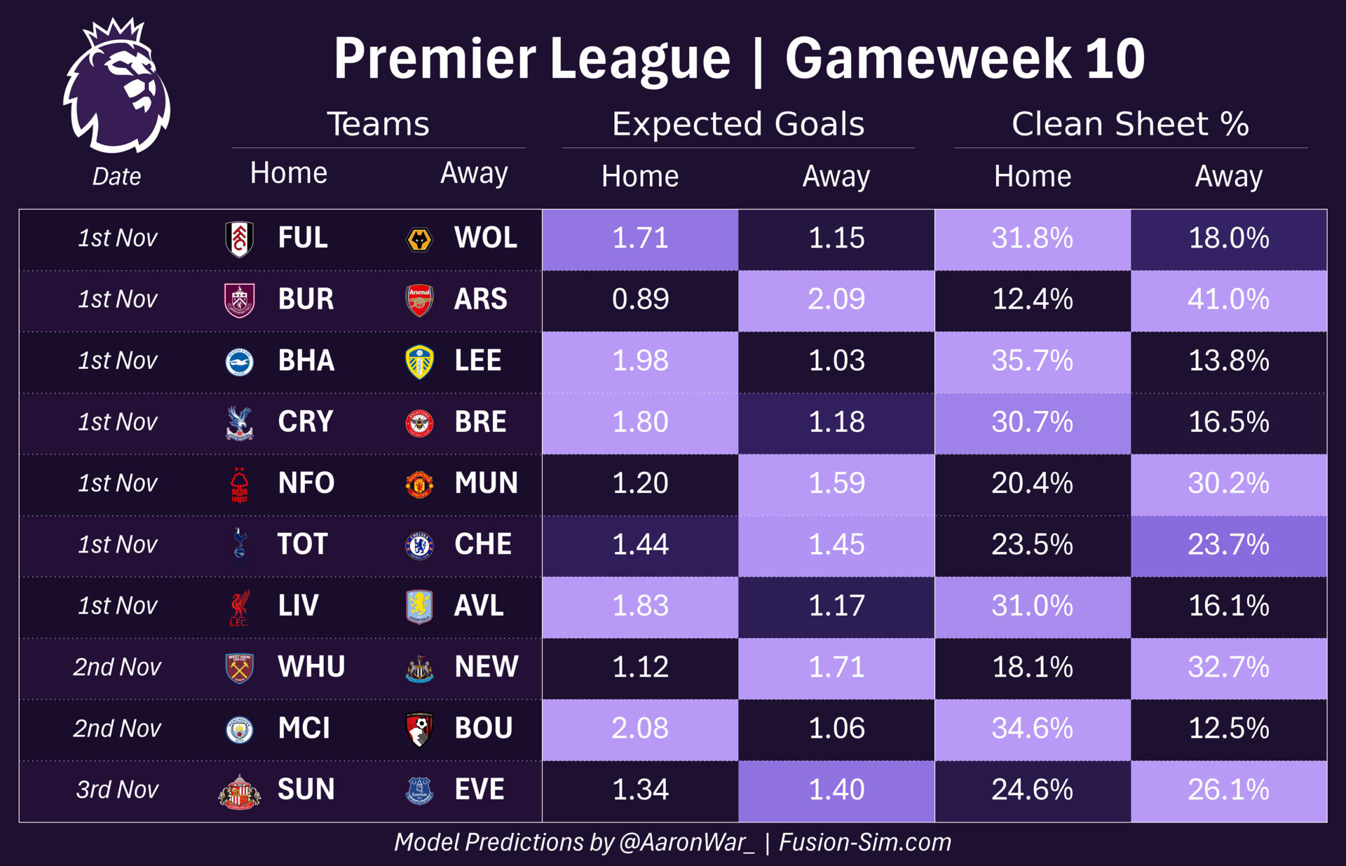 How does the Fusion-Sim 2.0 Model see Gameweek 10