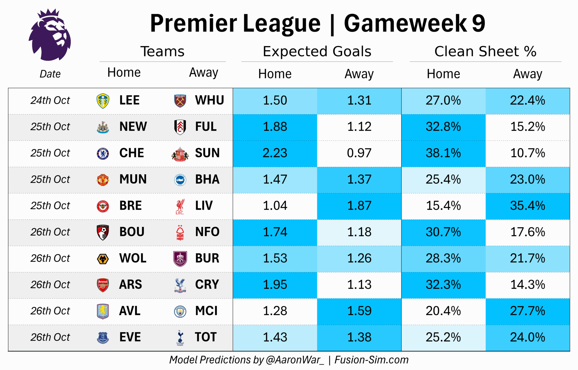 How does the Fusion-Sim 2.0 Model see Gameweek 9