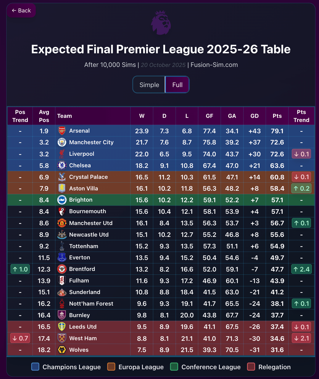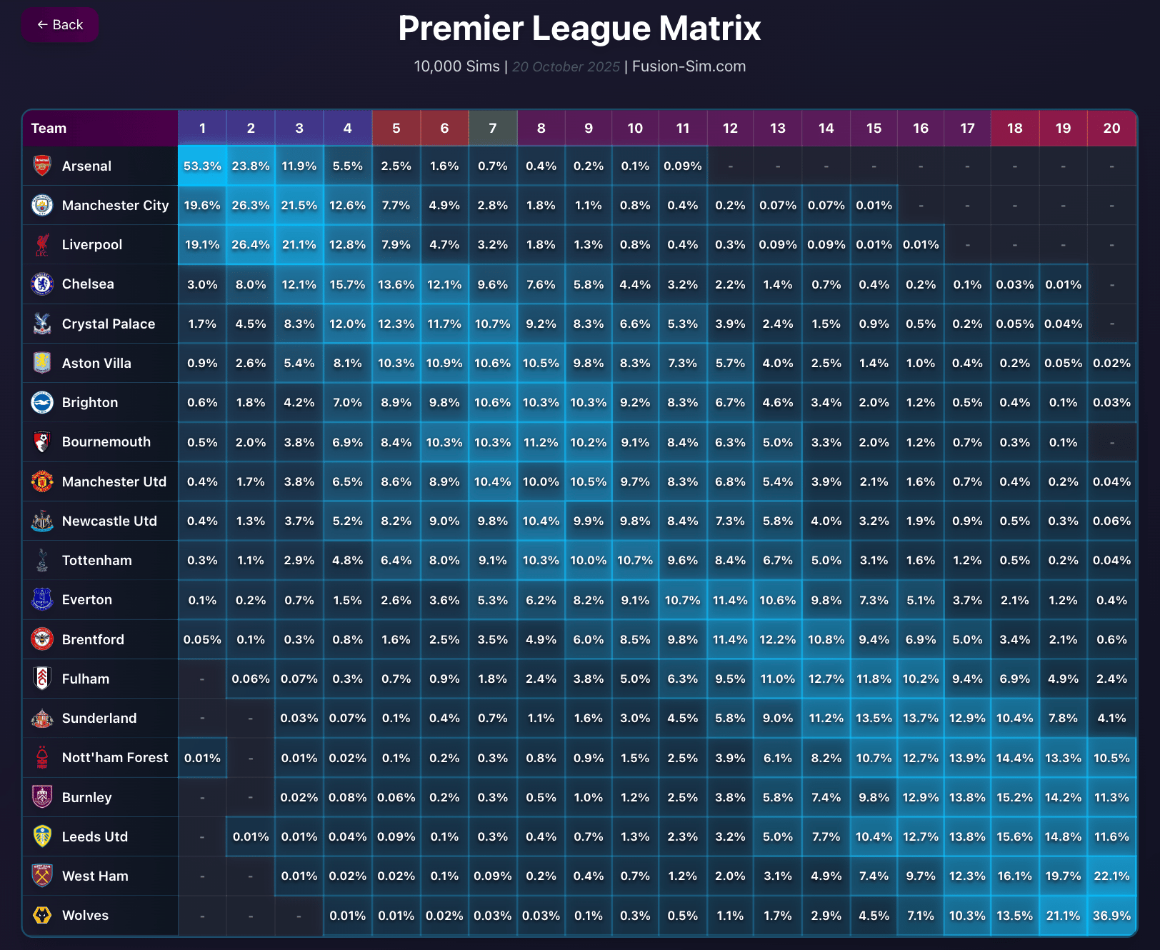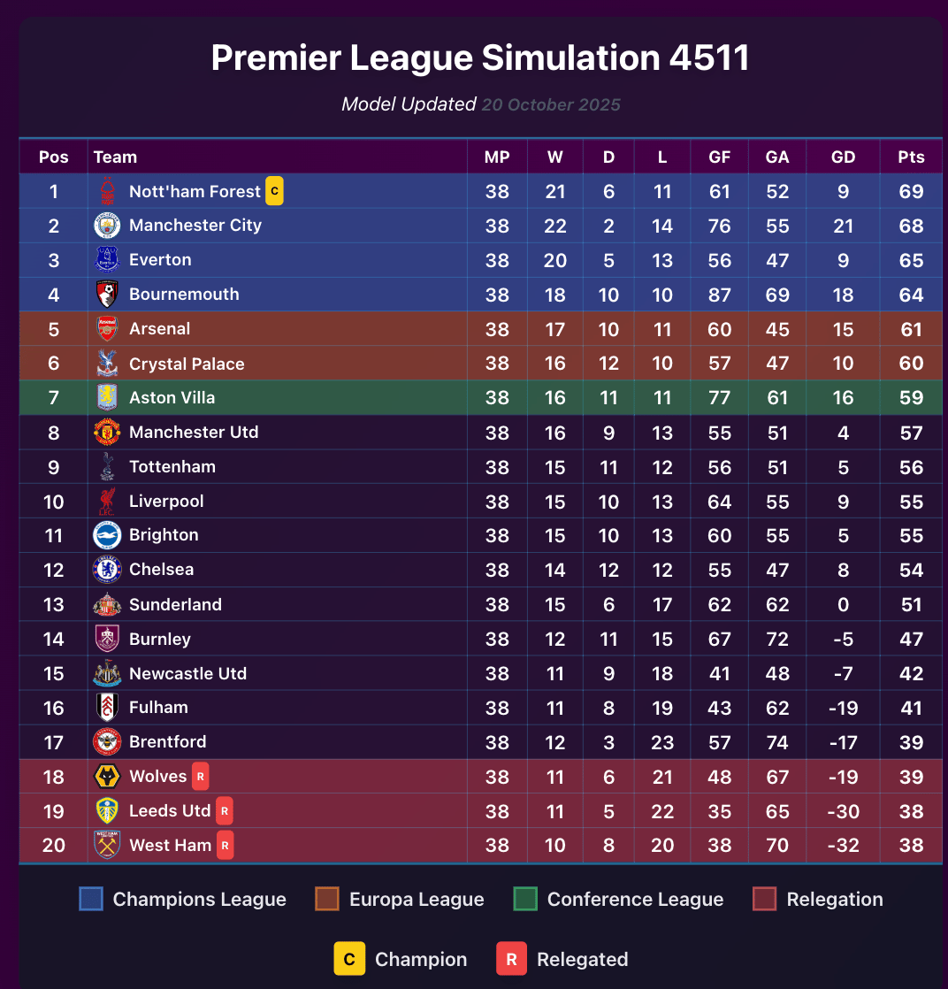Somehow Nottingham Forest picked up 1 Premier League win in 10,000 sims… which is exactly sim 4,511.